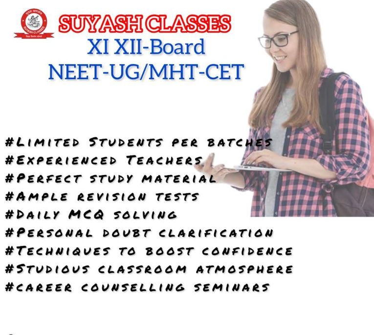 If you are looking for the best K-12 COACHING, NEET COACHING, CET, IIT-JEE COACHING near you, then you are at the right place. Students of Class 11, Class 12 can apply to join SUYASH CLASSES. The institute has highly experienced teachers. Click on the Contact button to send an enquiry now and the institute will give you a call back. You can also visit the institute at Suyash Classes, JIJAMATA Building, Baif Rd, opposite Mart Inn, Wagholi, Pune (Maharashtra) - 412207.